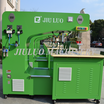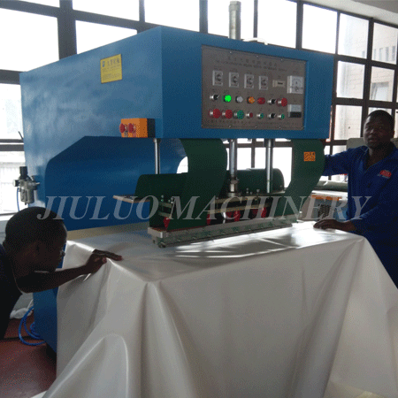 HF Tarpaulin/Tents/Canvas Welding Machine adopts special G-type structure,enlarge material storage area,suitable for large membrane,tarpaulin,canvas,tent etc welding.Meanwhile,this G-type machine adopts Jiuluo original technique-high frequency produced from bottom table,it ensures fast,strong and beautiful welding effect.