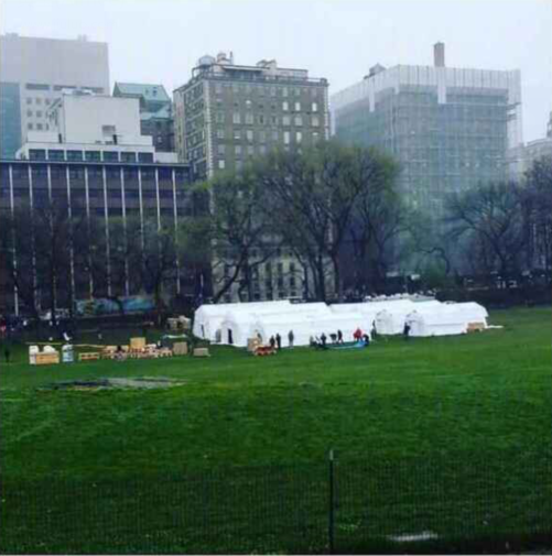 Last week, the New York medical system and charity began building mobile cabin hospitals in New York's landmark Central Park to treat Covid-19 patients.On the lawn of Central Park in Manhattan, hundreds of masked workers constantly unloaded pieces of white tarpaulin and other equipment on the grass to build a white greenhouse similar to a field hospital.